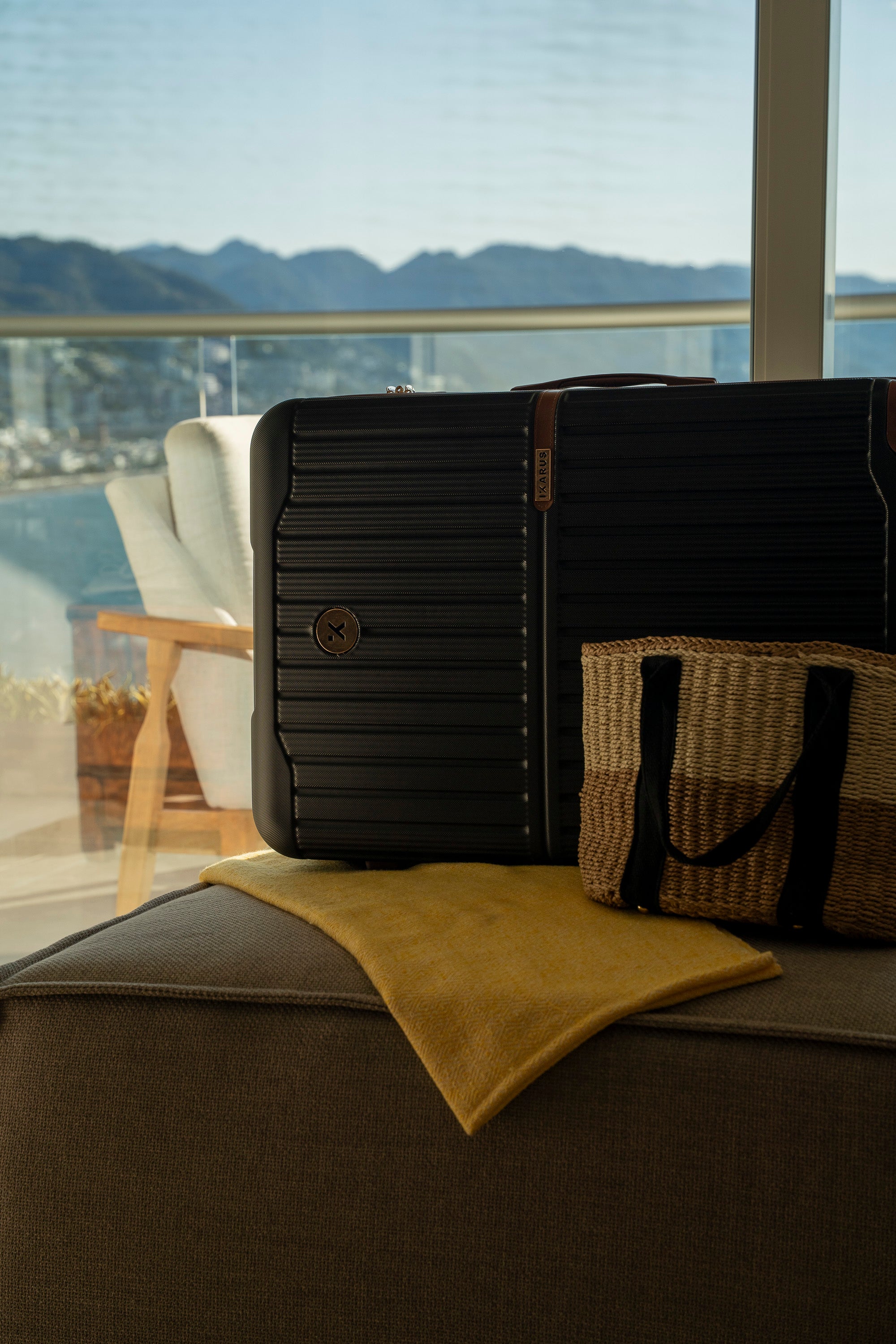 Gracias a sus vivos en cuero y herrajes color oro equipada con un material de acrilonitrilo butadieno estireno (ABS) de alta calidad, resistente al agua y abolladuras. En su interior encontrarás un poliéster muy suave.