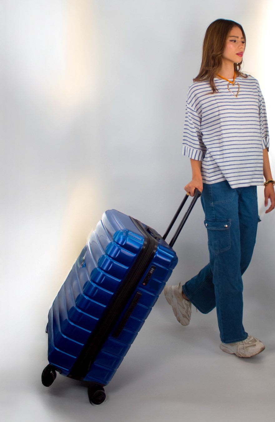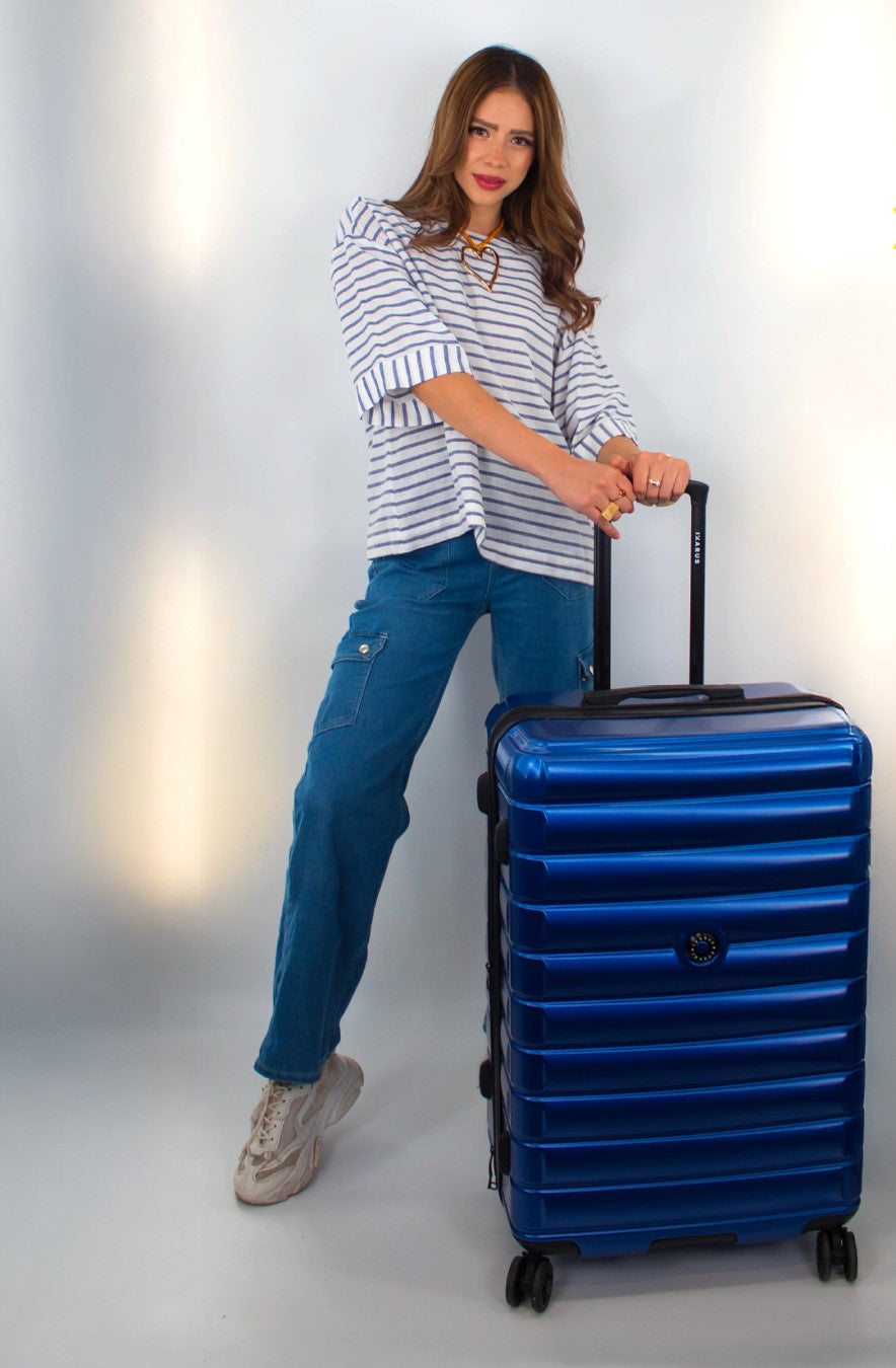 Rodas se presenta de una forma elegante con franjas en su diseño y acabado brillante. Esta maleta es un toque de estilo a tu experiencia de viaje.