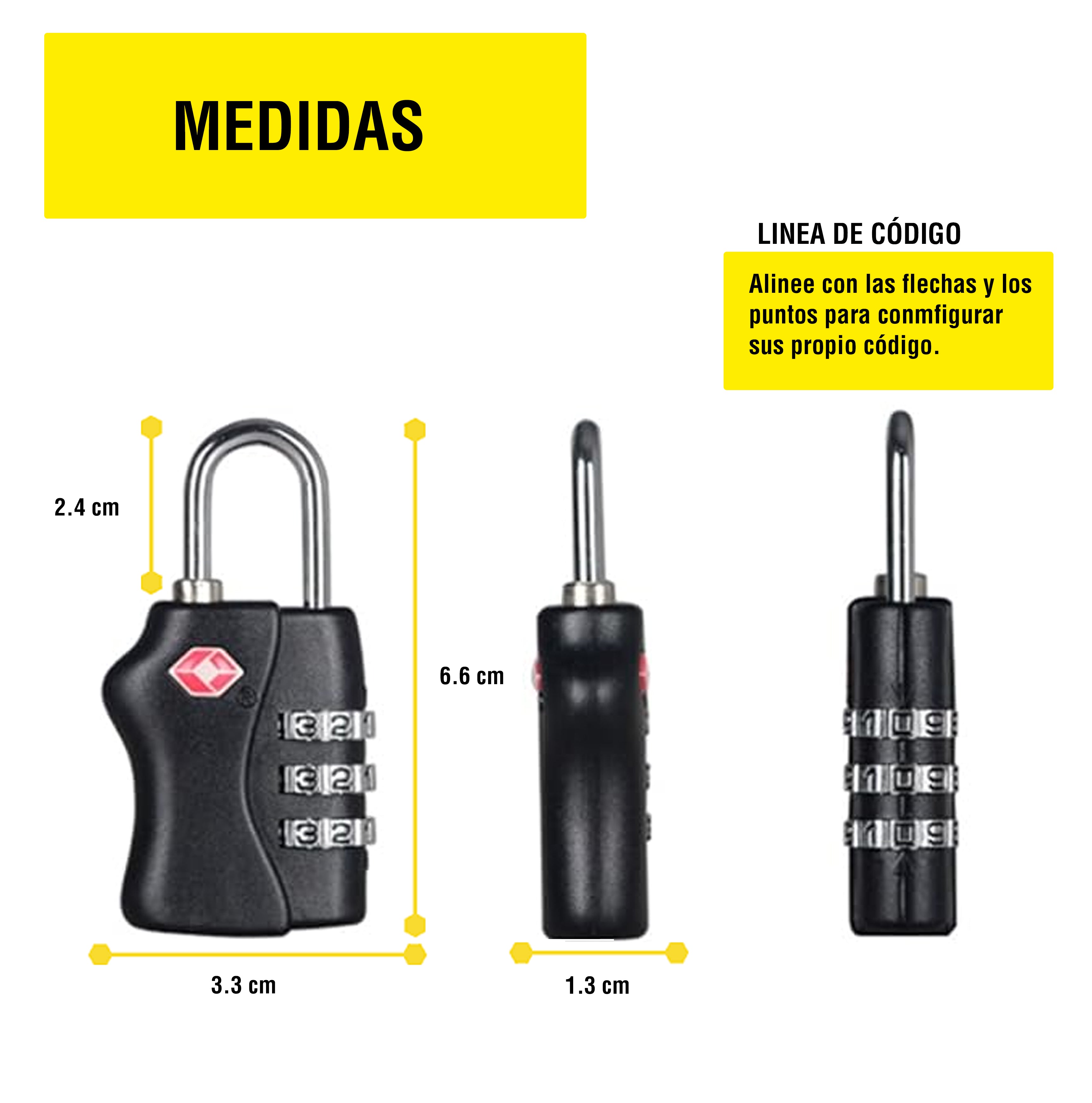 Con una ventana de contraseña en el lateral para una fácil visualización y alineación. La rueda negra grabada con el número blanco es elegante y claramente visible. Reduce drásticamente la dificultad de configurar la contraseña.