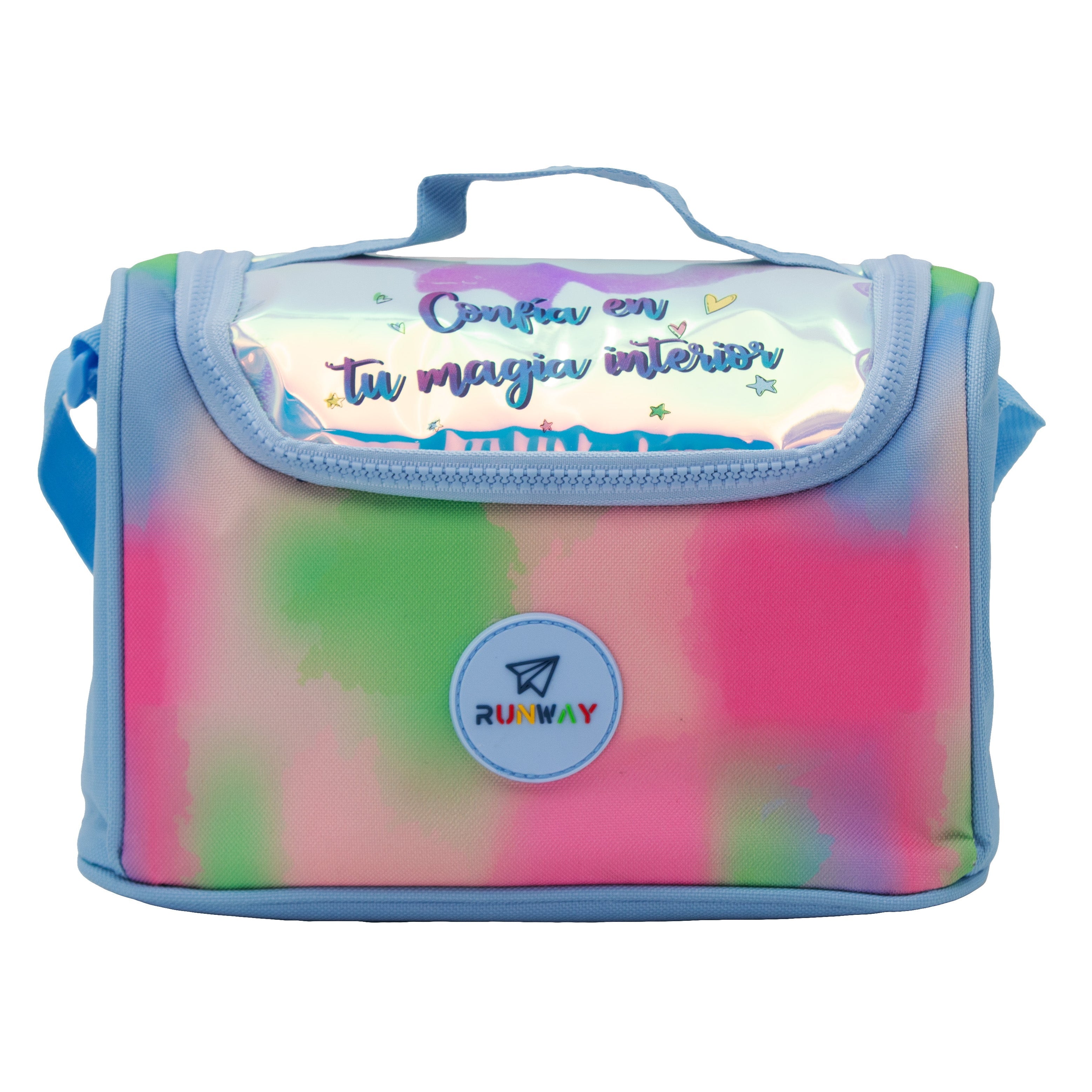 Lonchera escolar Runway: el complemento ideal para la mochila. Interior térmico que mantiene la temperatura de los alimentos, cierre seguro y correa ajustable para llevar al hombro o en la mano.