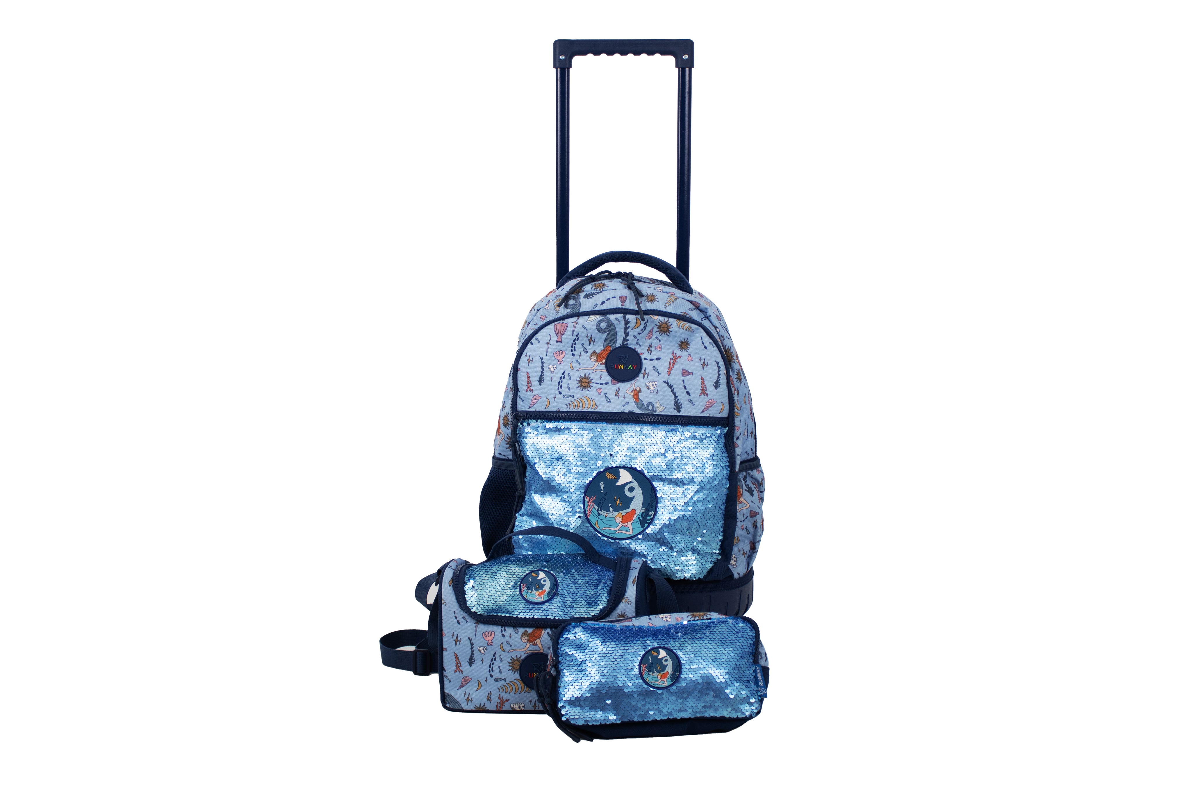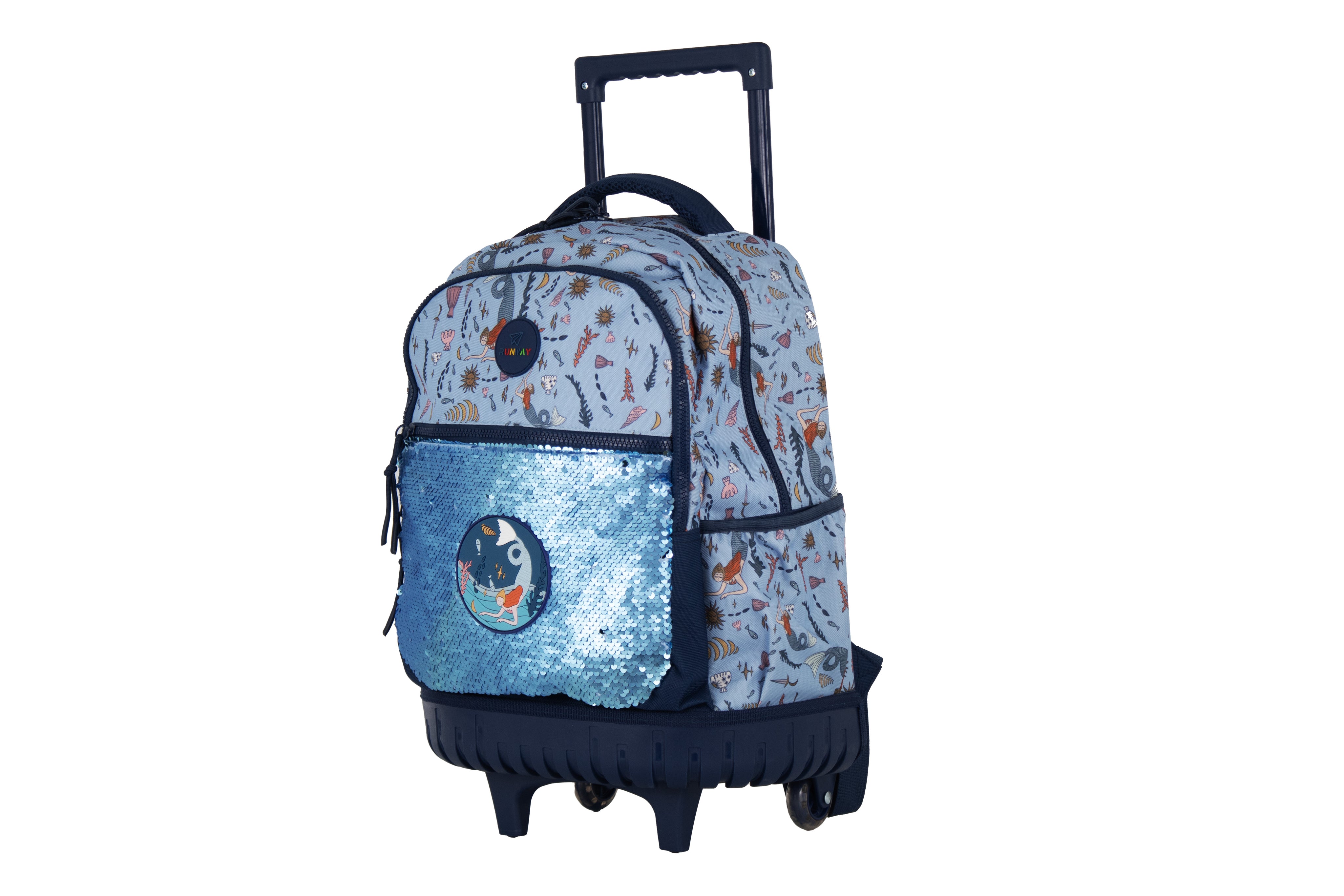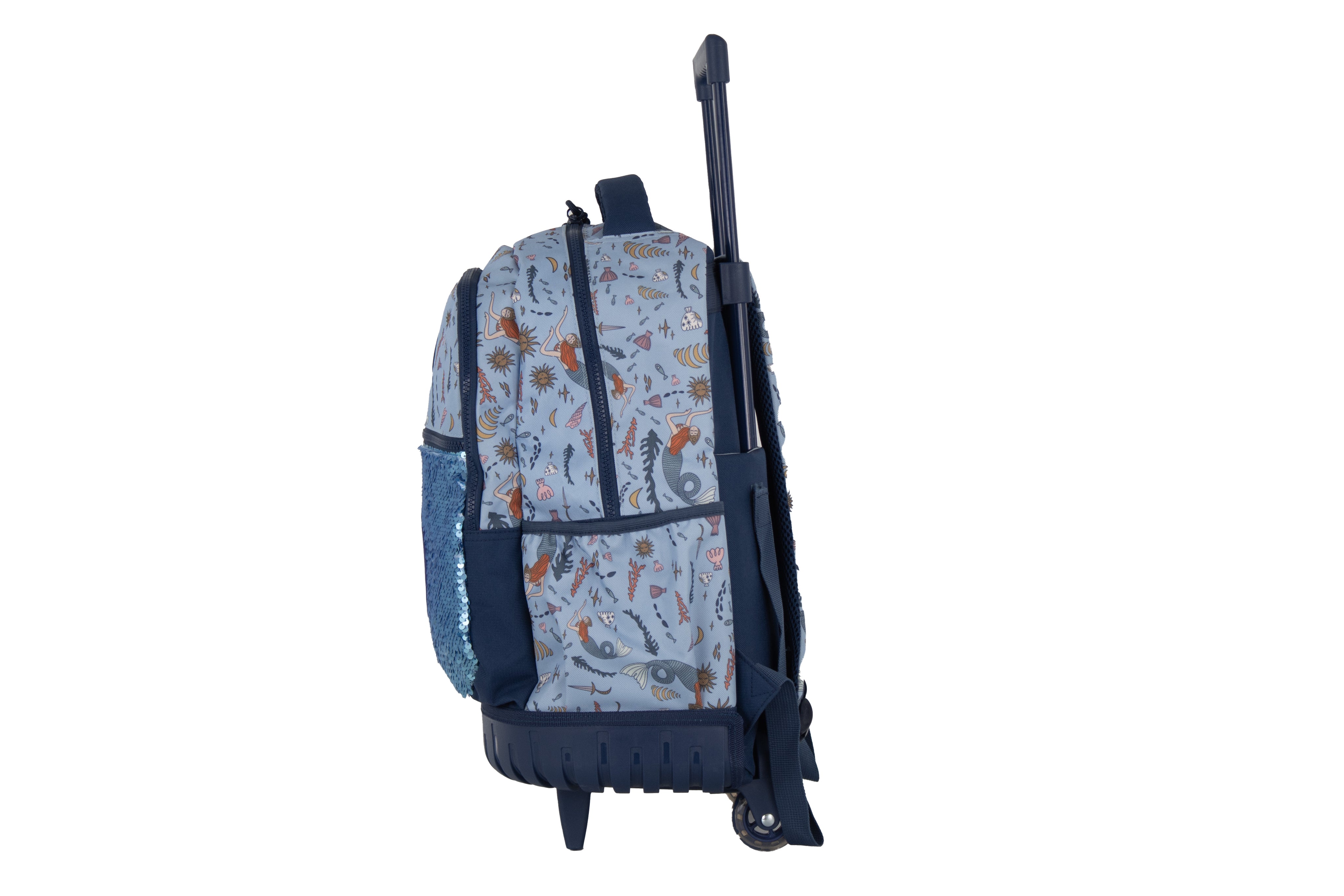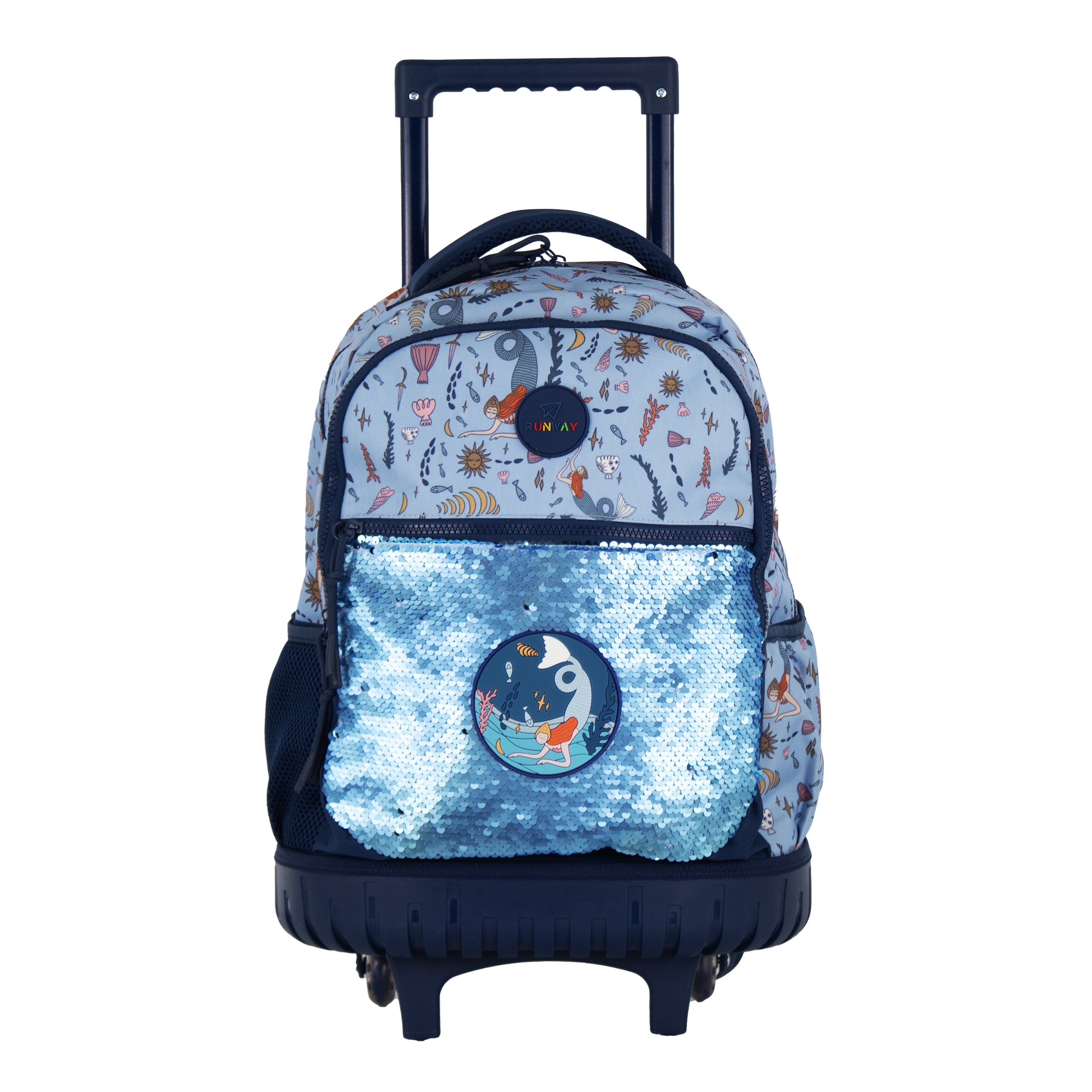 Mochila Escolar Runway Sirena Azul Con Lentejuelas Y Ruedas