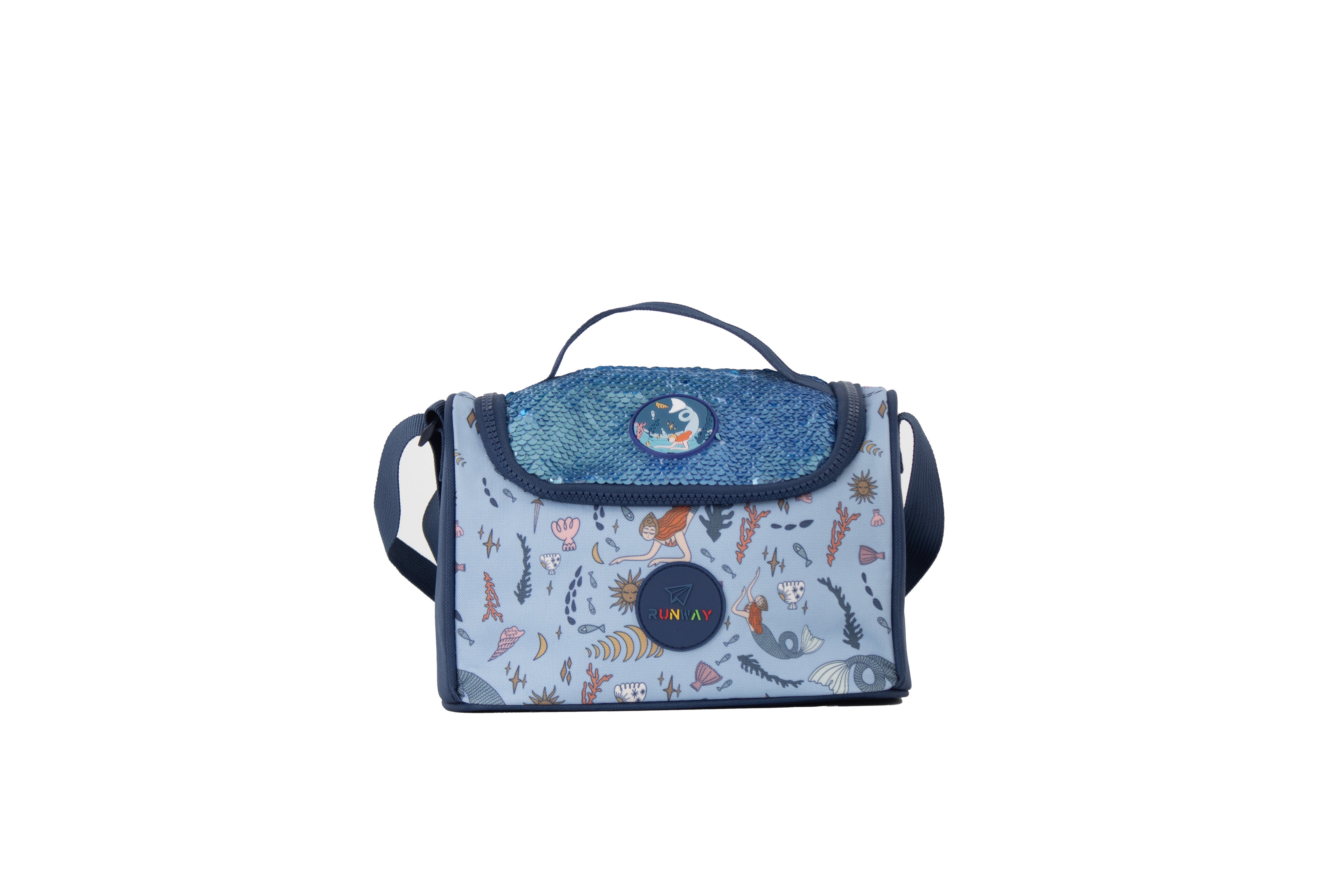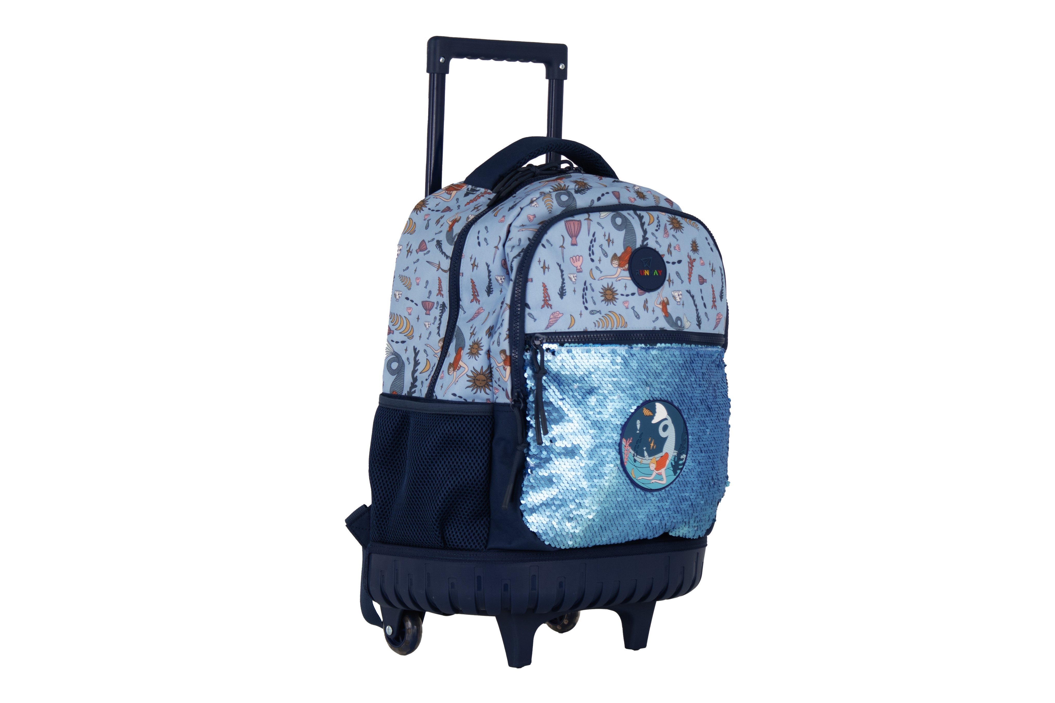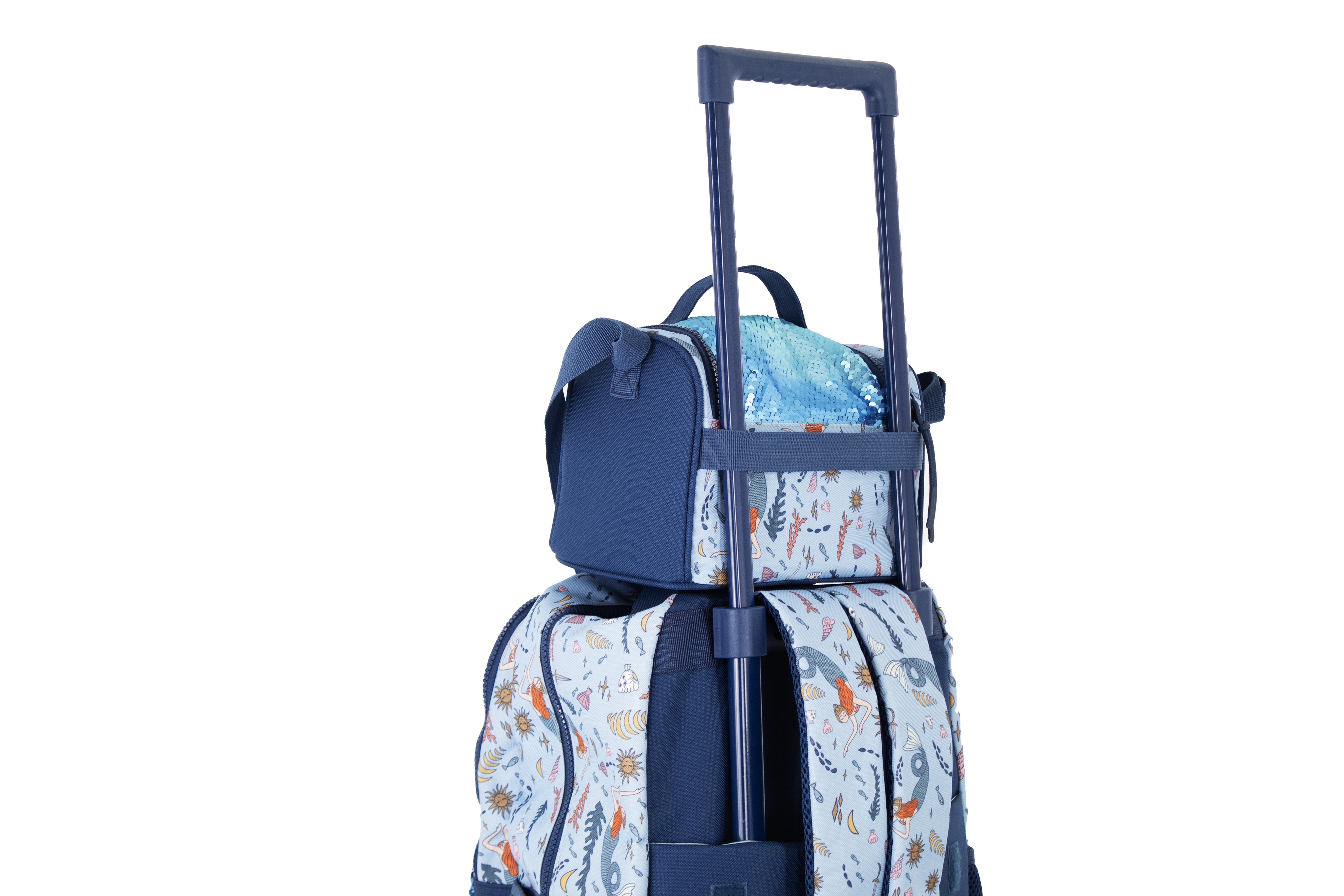 • Mochila Escolar Runway Sirena Azul Con Lentejuelas Y Ruedas