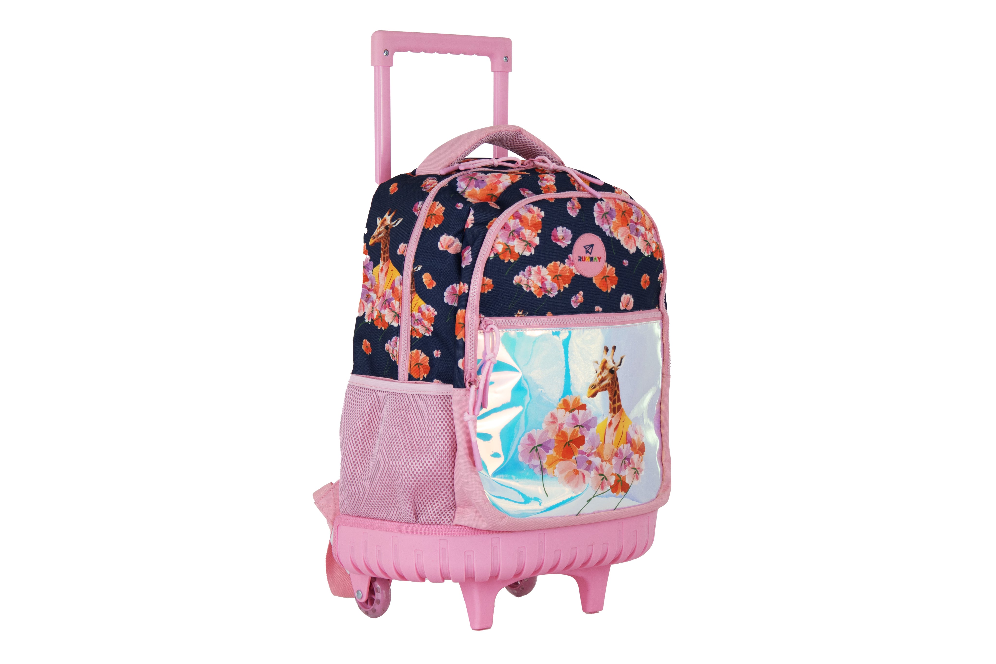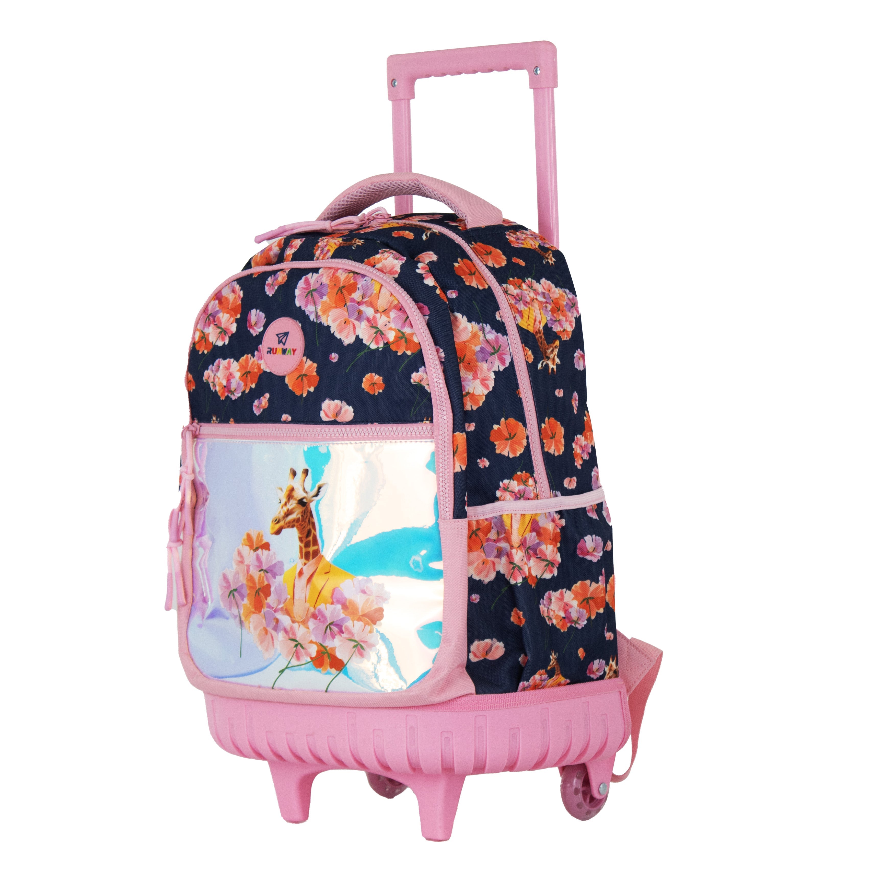 • Mochila Runway Rosa Jirafa Y Flores Con Ruedas Escolar