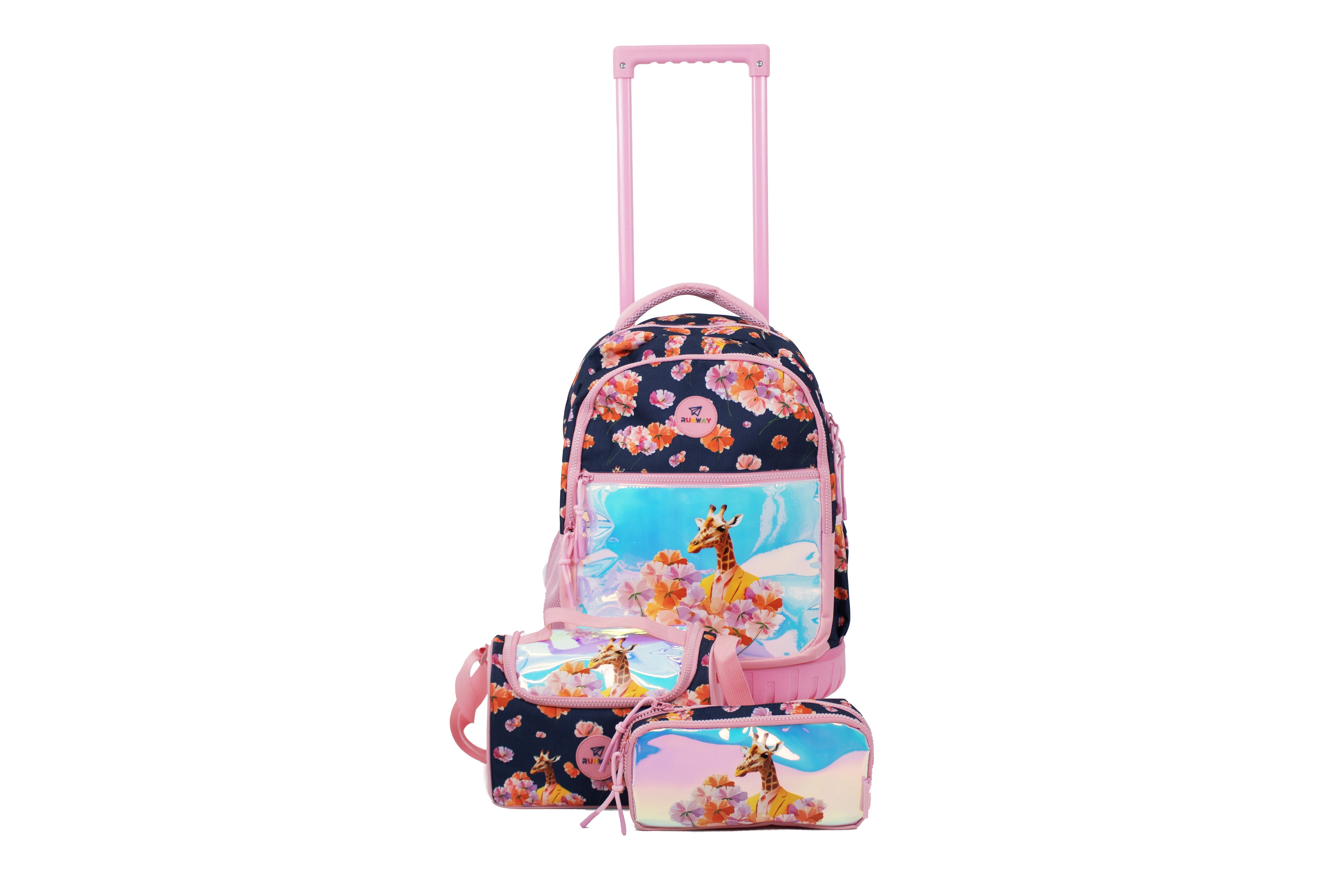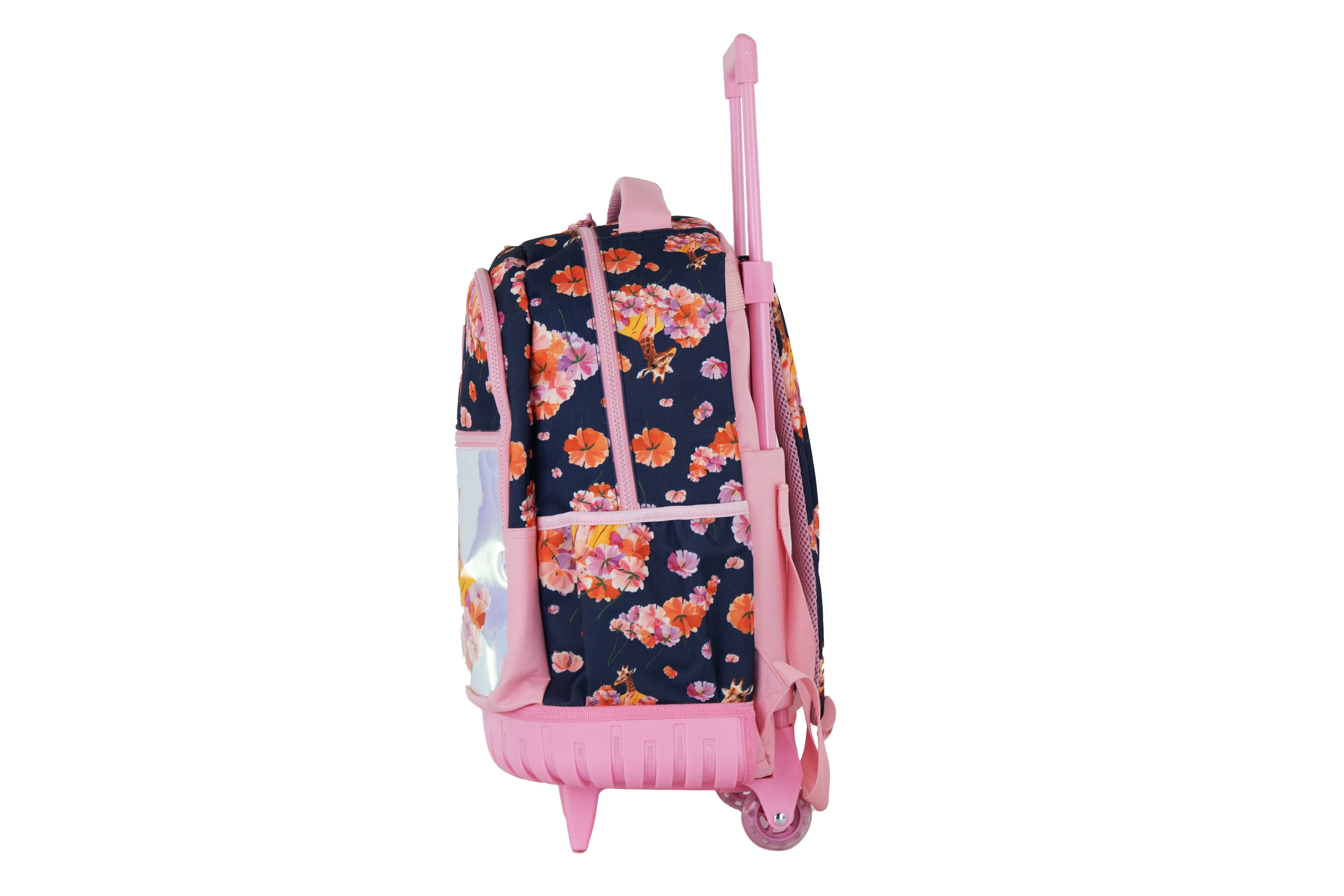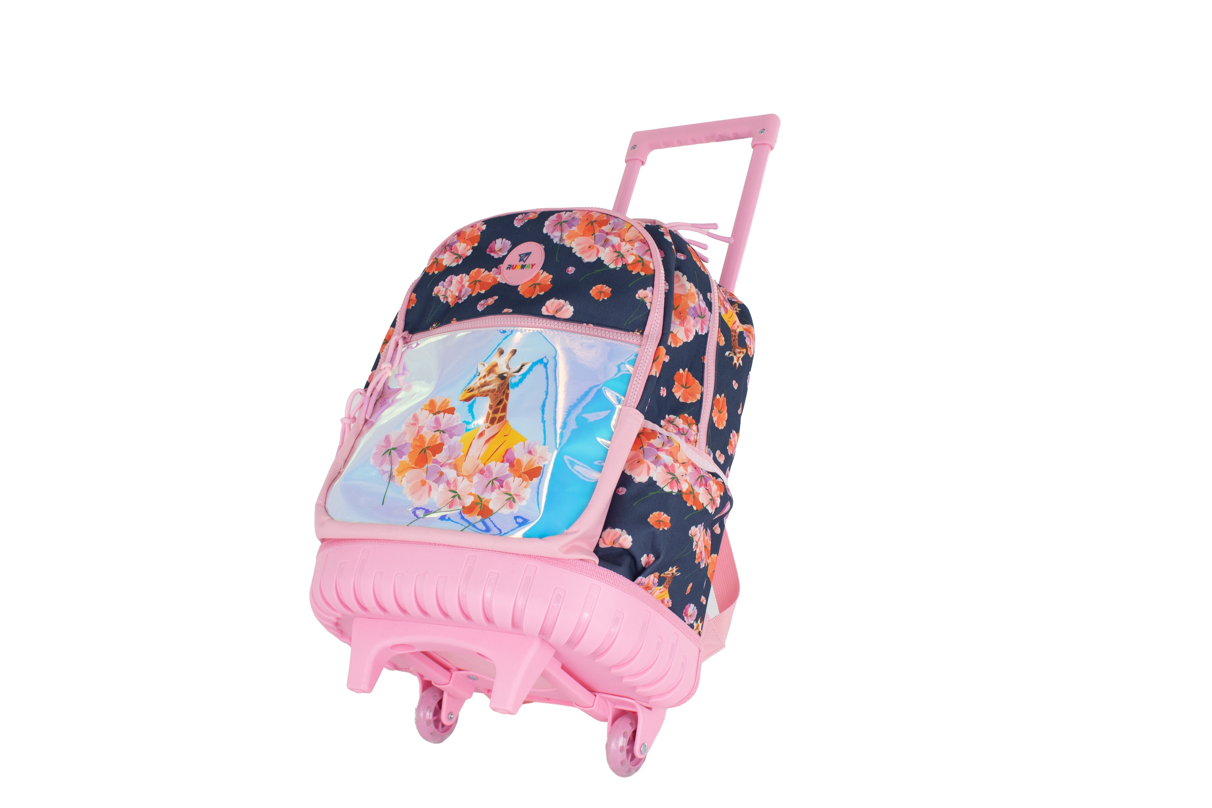 Mochila Runway Rosa Jirafa Y Flores Con Ruedas Escolar