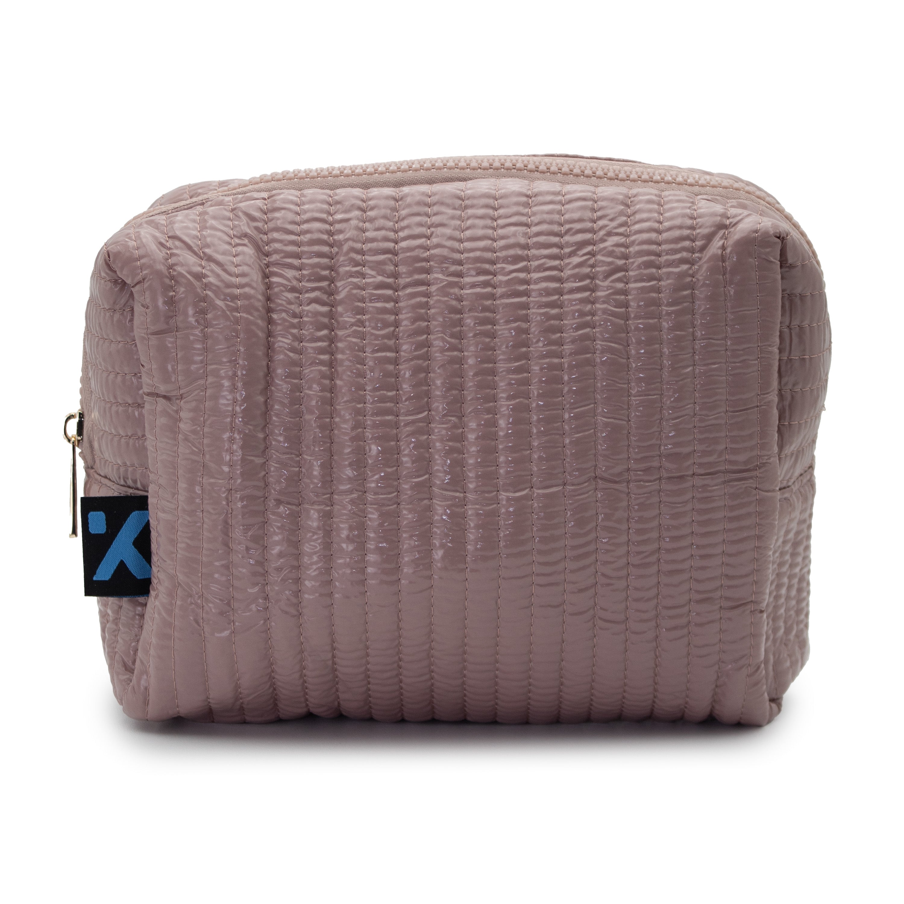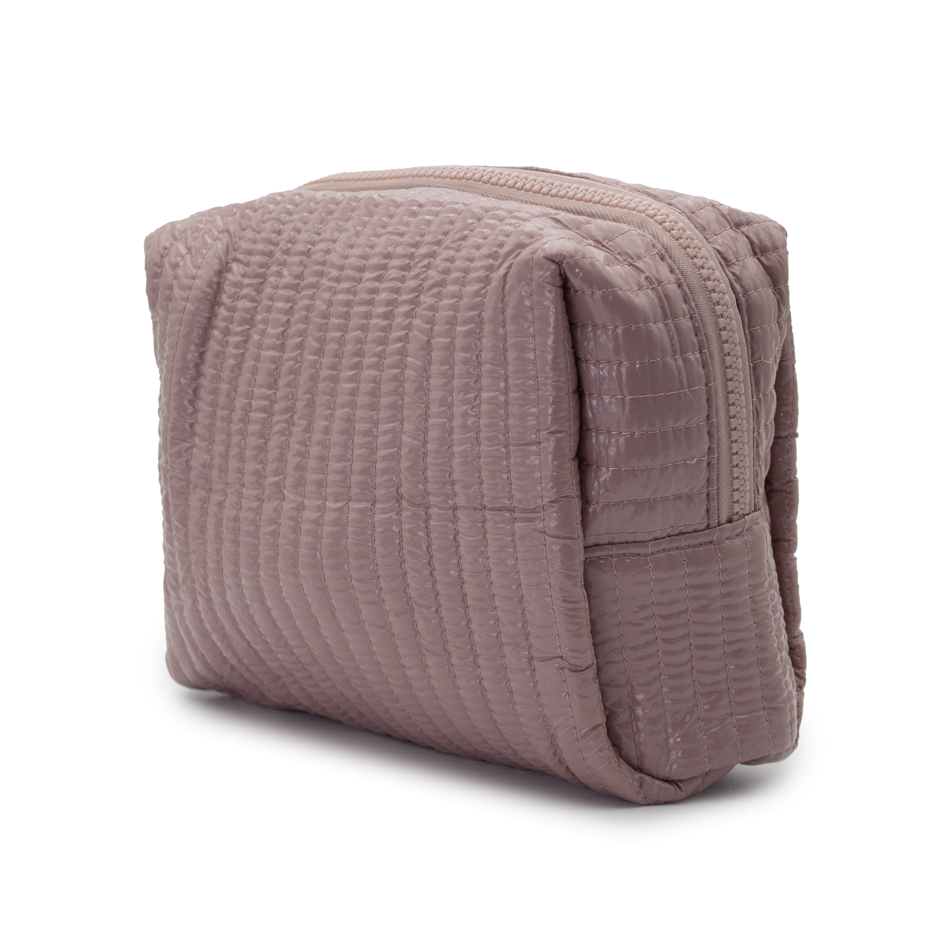 Eleva tu rutina de belleza con este accesorio que combina tendencia y funcionalidad. Su diseño cuadrado y compacto está revestido con un material de efecto acolchado ondulado wavy, que le da una textura rica y moderna.