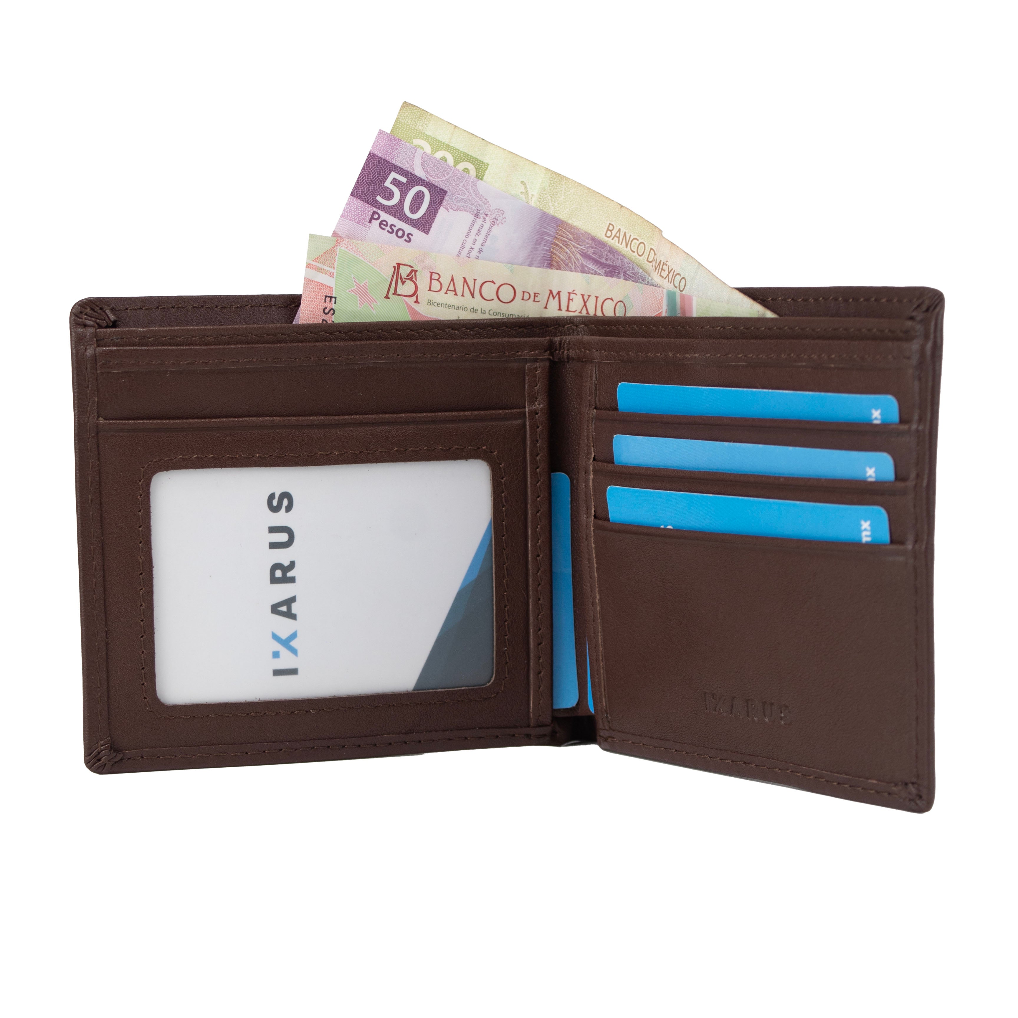Elegancia clásica y funcionalidad moderna se unen en esta billetera IKARUS. Diseñada para quienes buscan un accesorio sofisticado y duradero, su acabado en cuero liso ofrece un tacto suave y una apariencia impecable que mejora con el tiempo.