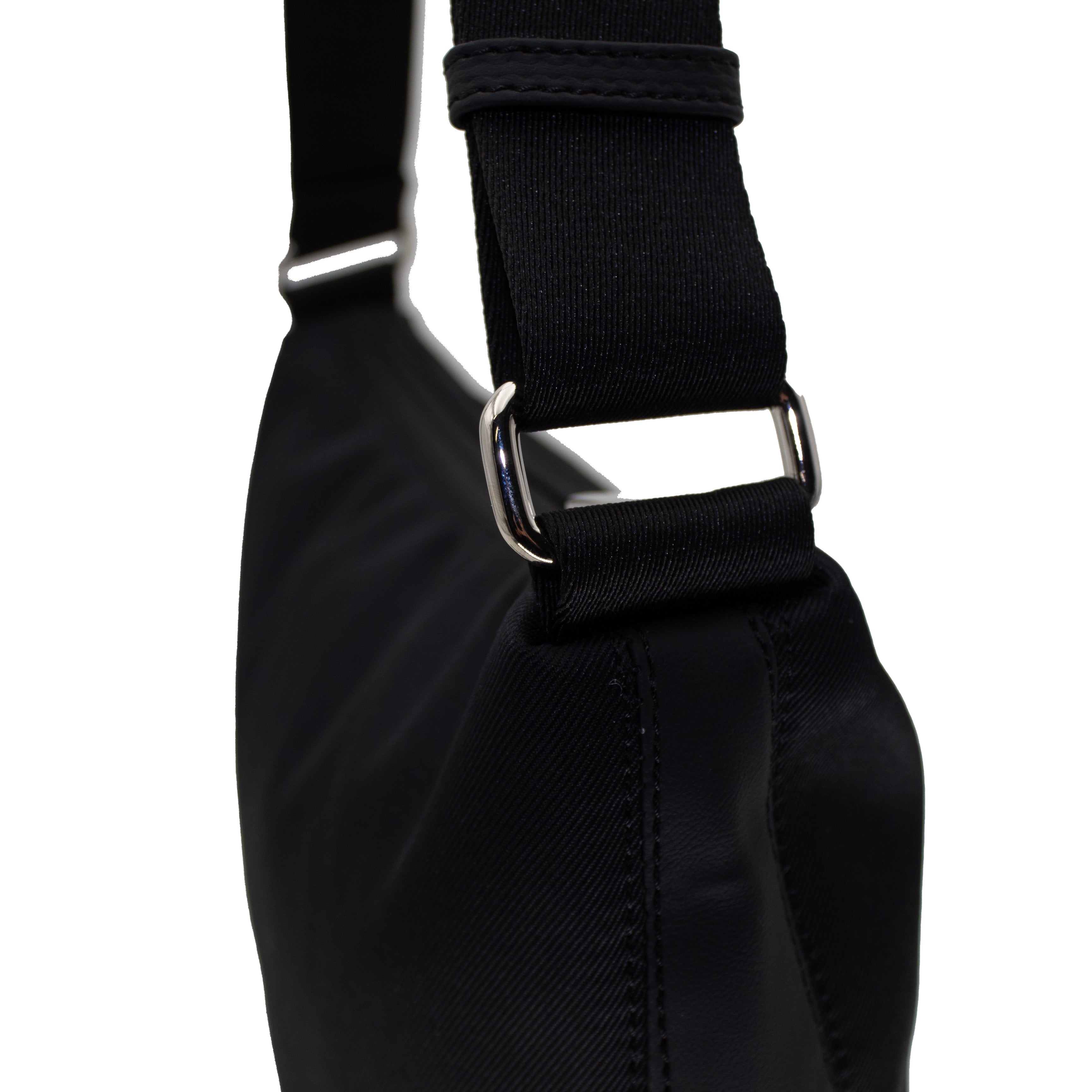 -Diseño ergonómico en forma de media luna que se ajusta perfectamente debajo del brazo o cruzada al cuerpo.