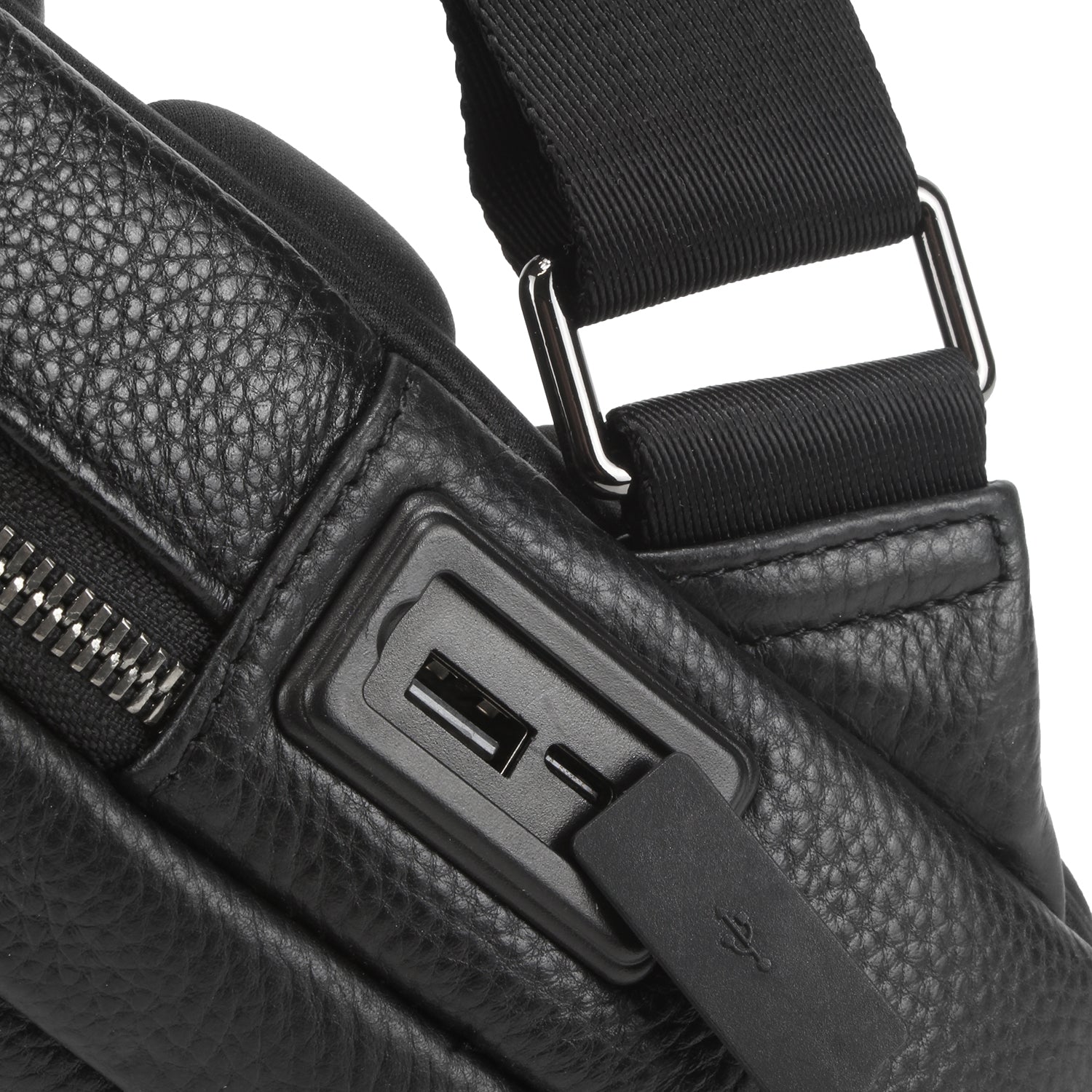 Conectividad en movimiento – Compartimento lateral exterior con puerto USB y entrada tipo C para conectar tus dispositivos mientras te desplazas.